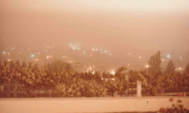 The bulletins coming over are ‘Do not panic.’ We were to close all the houses, bring in as many pets as you could. Close all of the curtains. Plug up any drafts. Cindy, I had been teaching Sunday School, and when I came out at 10 o’clock, there was a terrific black cloud approaching from the west like I used to see in the Midwest and yet I have never seen since I’ve lived in Yakima. But dead calm. And can you believe I debated whether to try to make it home?