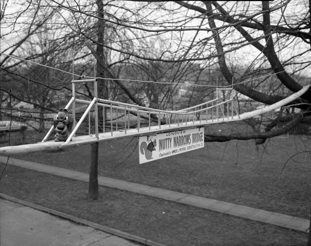 “And he would see squirrels getting run over outside his window, and he felt sorry for them, so he constructed a bridge across Olympia Way,” Hadley said. “He called it the Nutty Narrows. And now have nine bridges across different roads, a couple of them have cameras on them, and squirrels actually use them.”