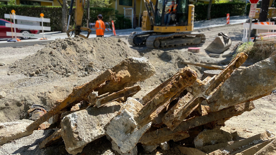 Via email, a spokesperson said that the contractor on the project has uncovered a lot of railroad ties from the 1930s-era streetcar line, as well as what’s believed to be artifacts of the 1890 Madison Street cable car line – neither of which they say has any historical value.