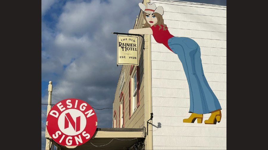 Rainier’s icon was a giant plywood cowgirl dressed in cowboy boots, jeans, red blouse and a cowboy hat that functioned as a commercial beacon and a pre-smartphone aid to navigation – as in, “head over that-a-way, and then turn right just past the big cowgirl.”