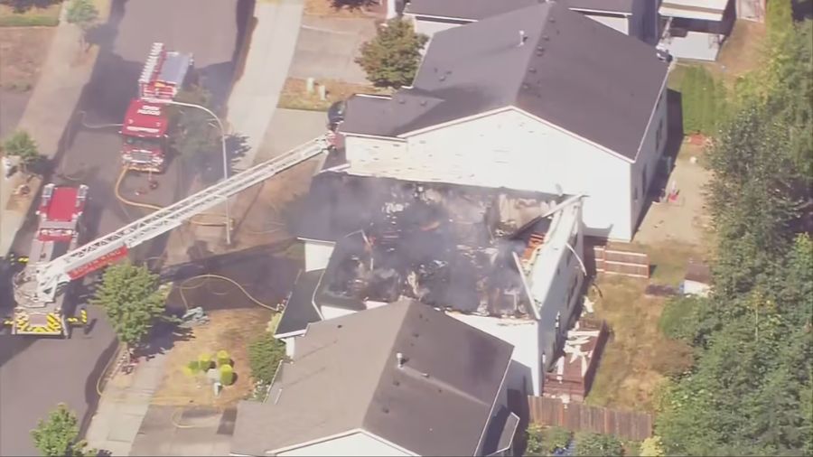 Two people hospitalized after I-5 brush fire spreads to homes in South Hill